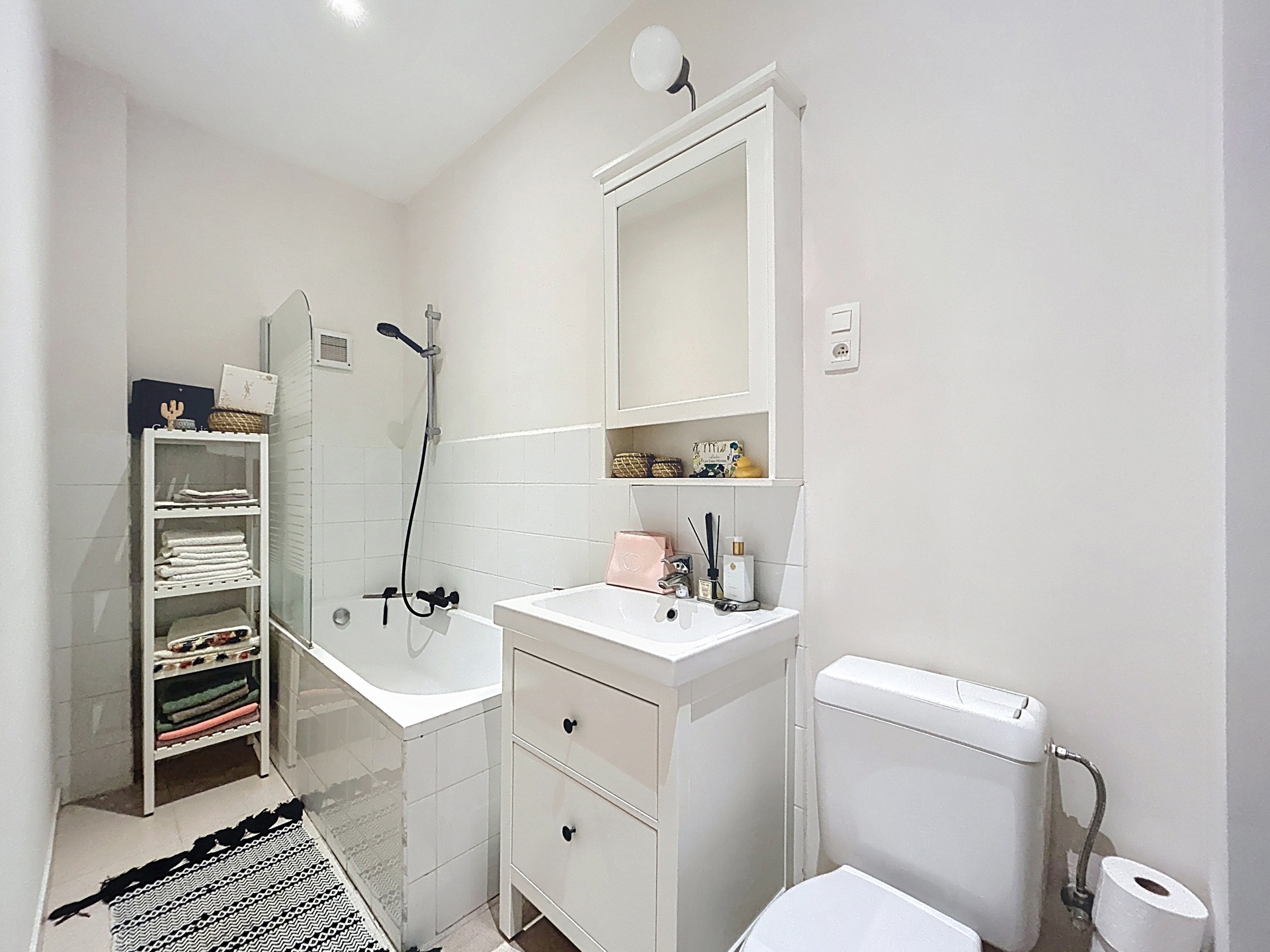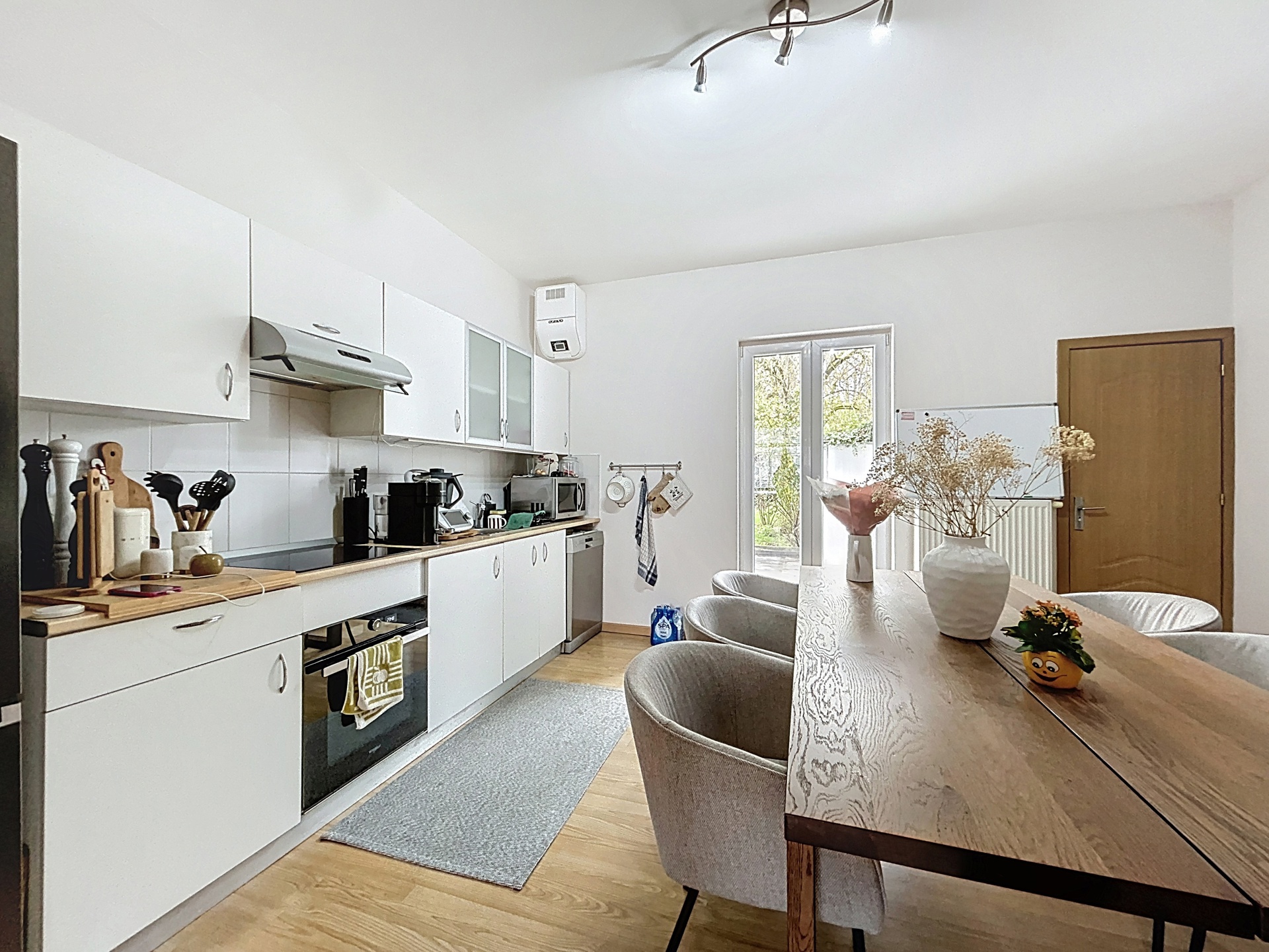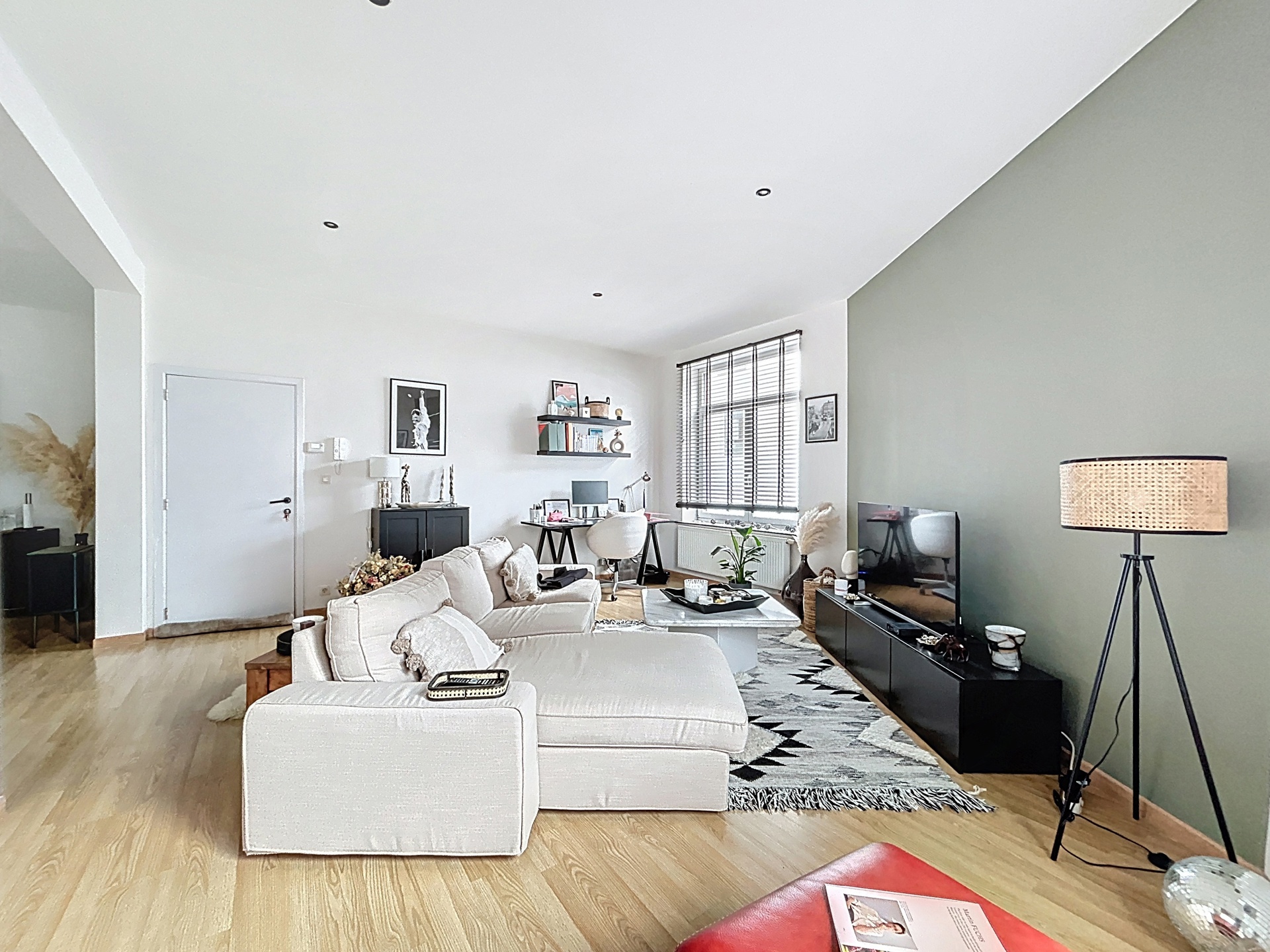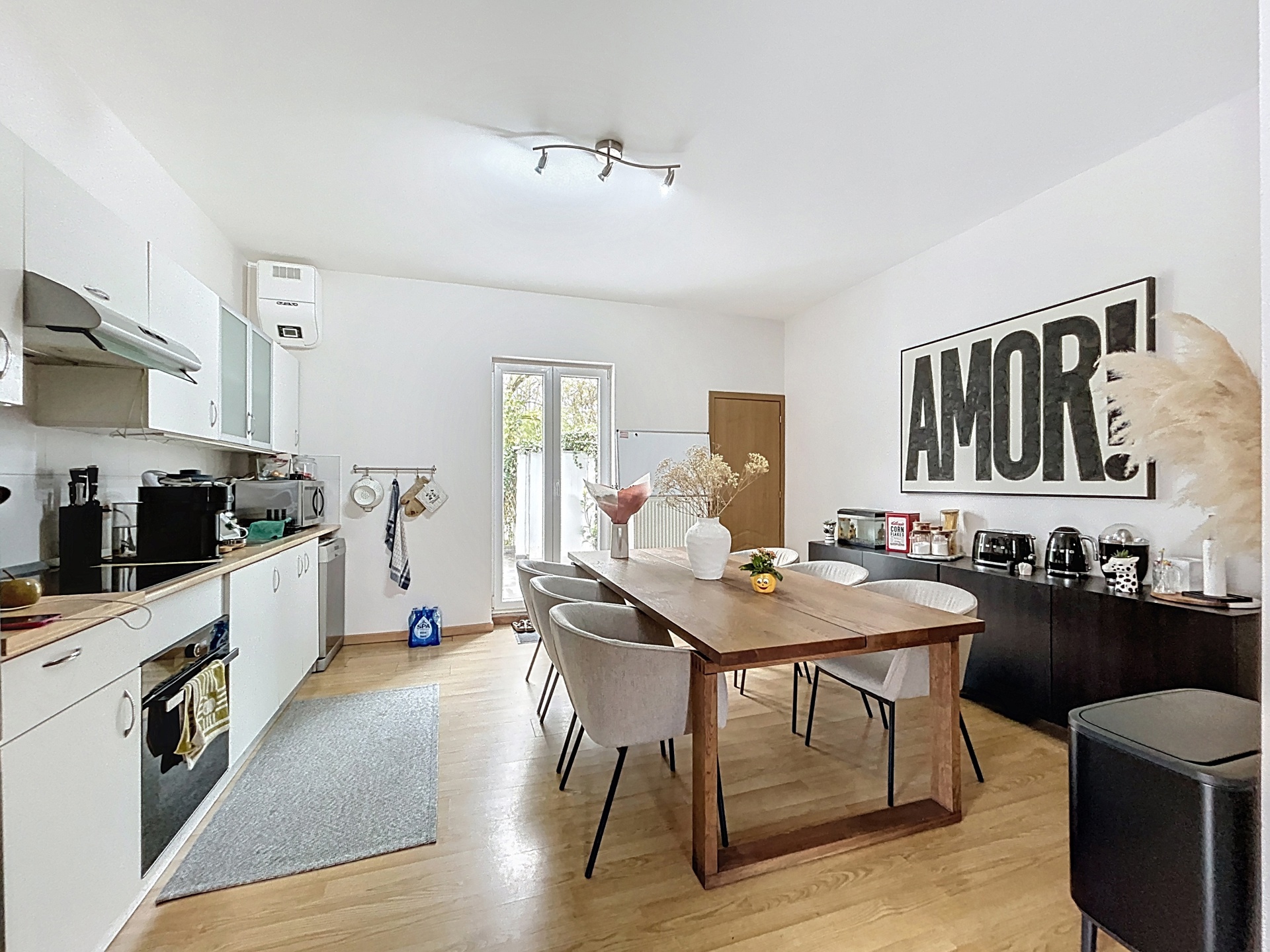 ** Rez-de-chaussée (± 65m²) : hall d’entrée en commun - séjour ± 30,5m² - cuisine semi-équipée ouverte - chambre (± 10m²) - salle d'eau (baignoire avec douche, lavabo et w.c.) - buanderie/chaufferie.