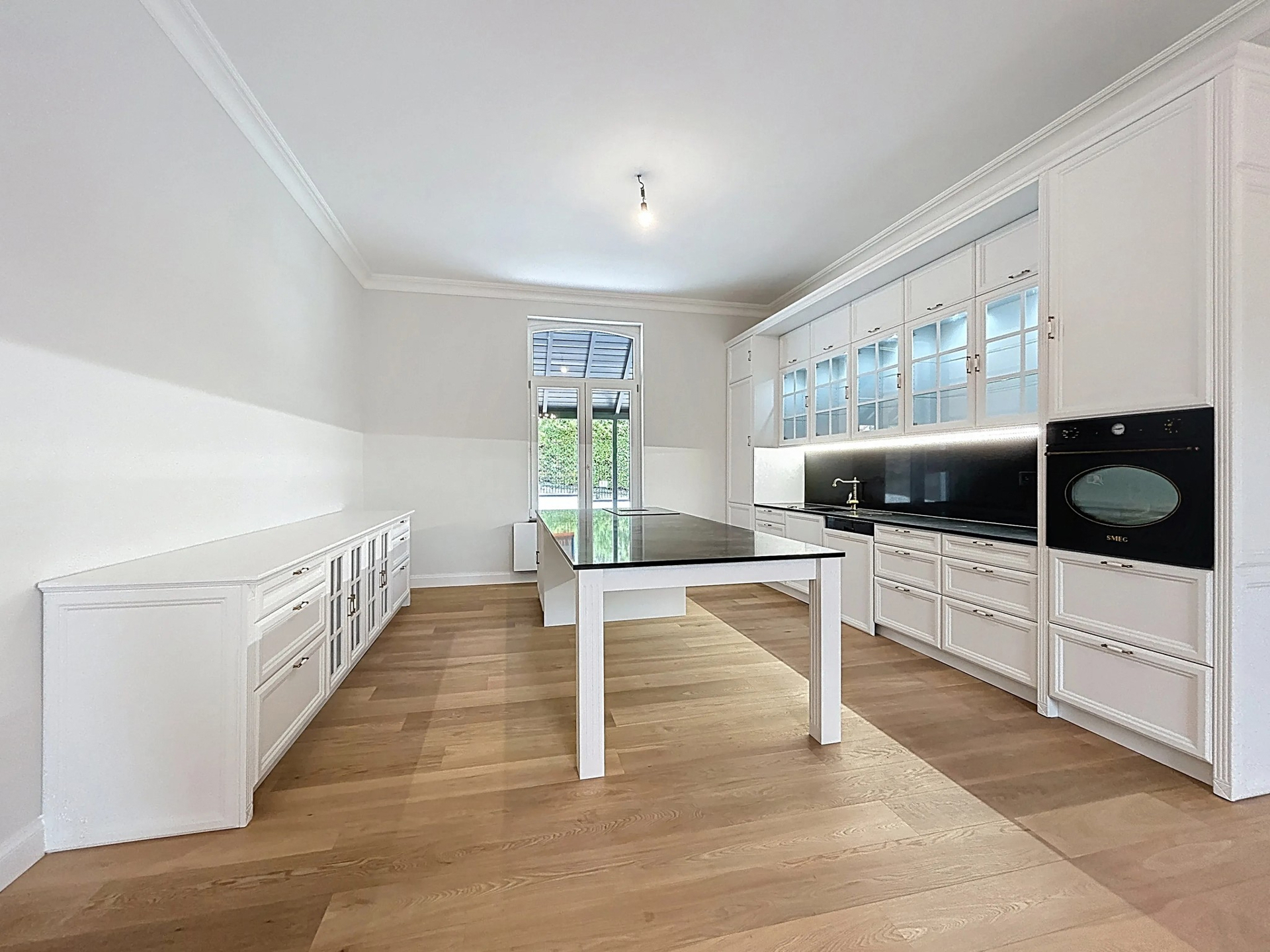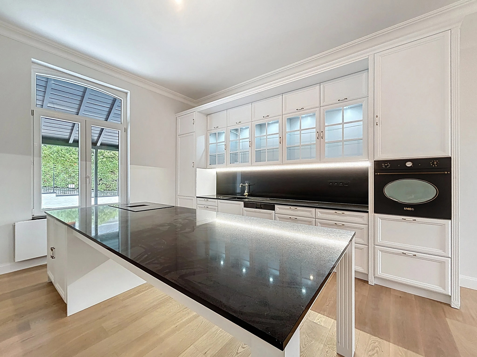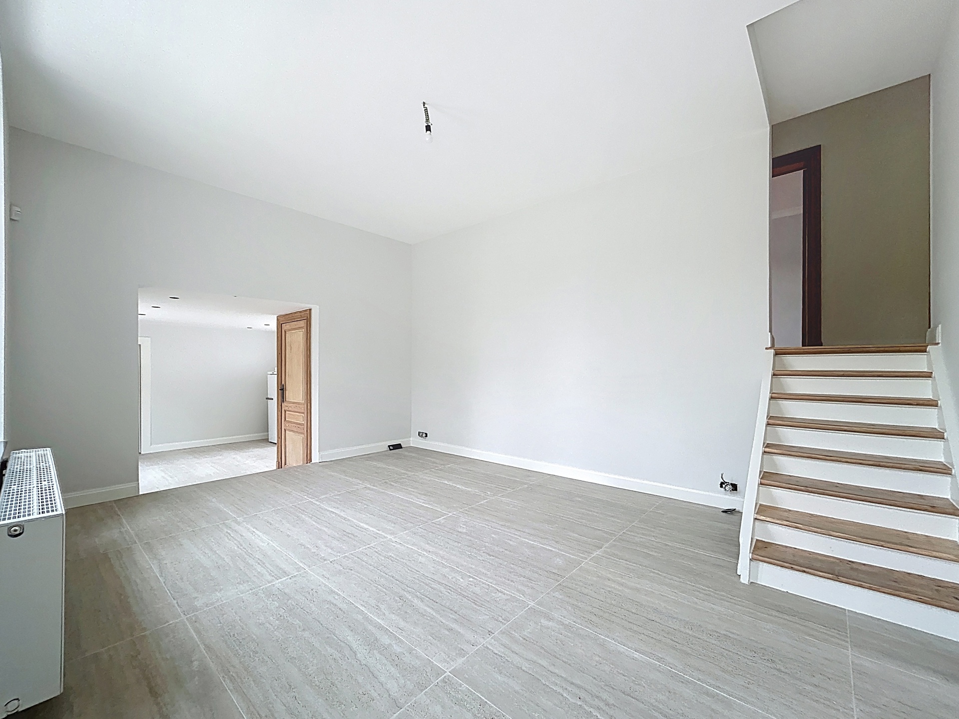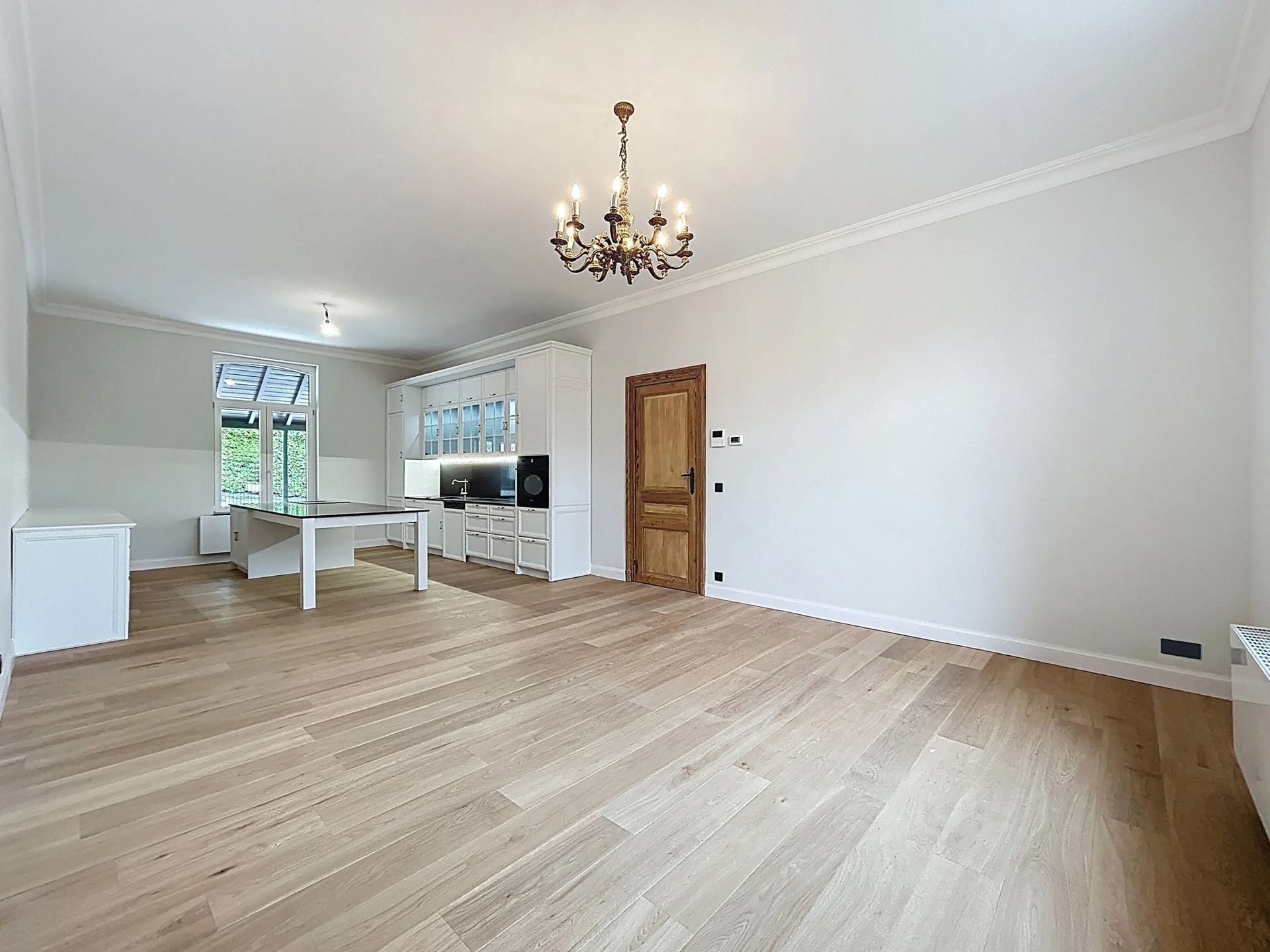 Privé : hall d'entrée - séjour/salle à manger ± 45m² - cuisine ouverte super-équipée (four, taque, hotte, frigo, congélateur et lave-vaisselle).