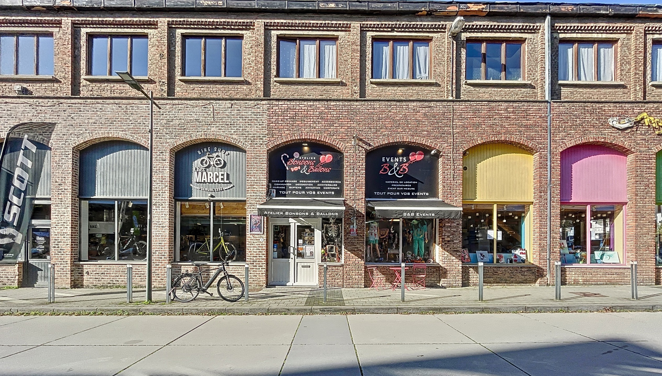 ** Rez-de-chaussée (± 75m²) : espace commercial - kitchenette et w.c.